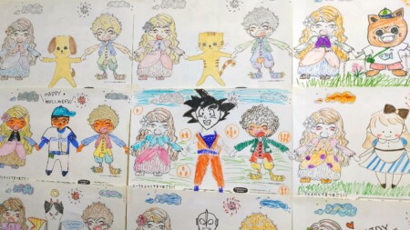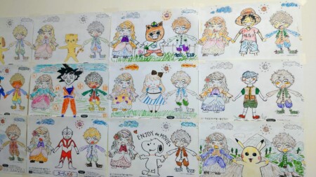 みんなのぬりえが手をつなぎます。たくさんの作品をお待ちしております。